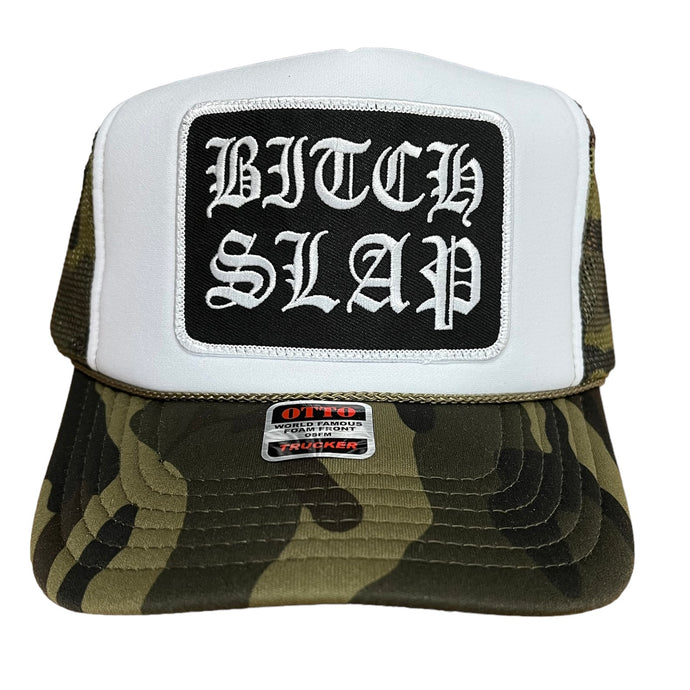 Bitchslap Jumbo 3D Old English Embroidery Flat Brim Snap Back Trucker - Black