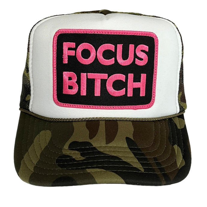 Fuchsia Focus Bitch Camouflage Trucker Hat