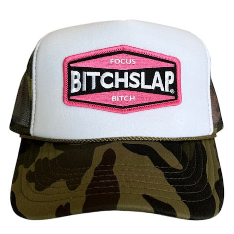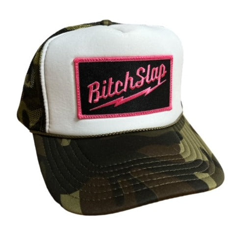 Bitchslap Fuchsia Big Bolt Camou Trucker hat
